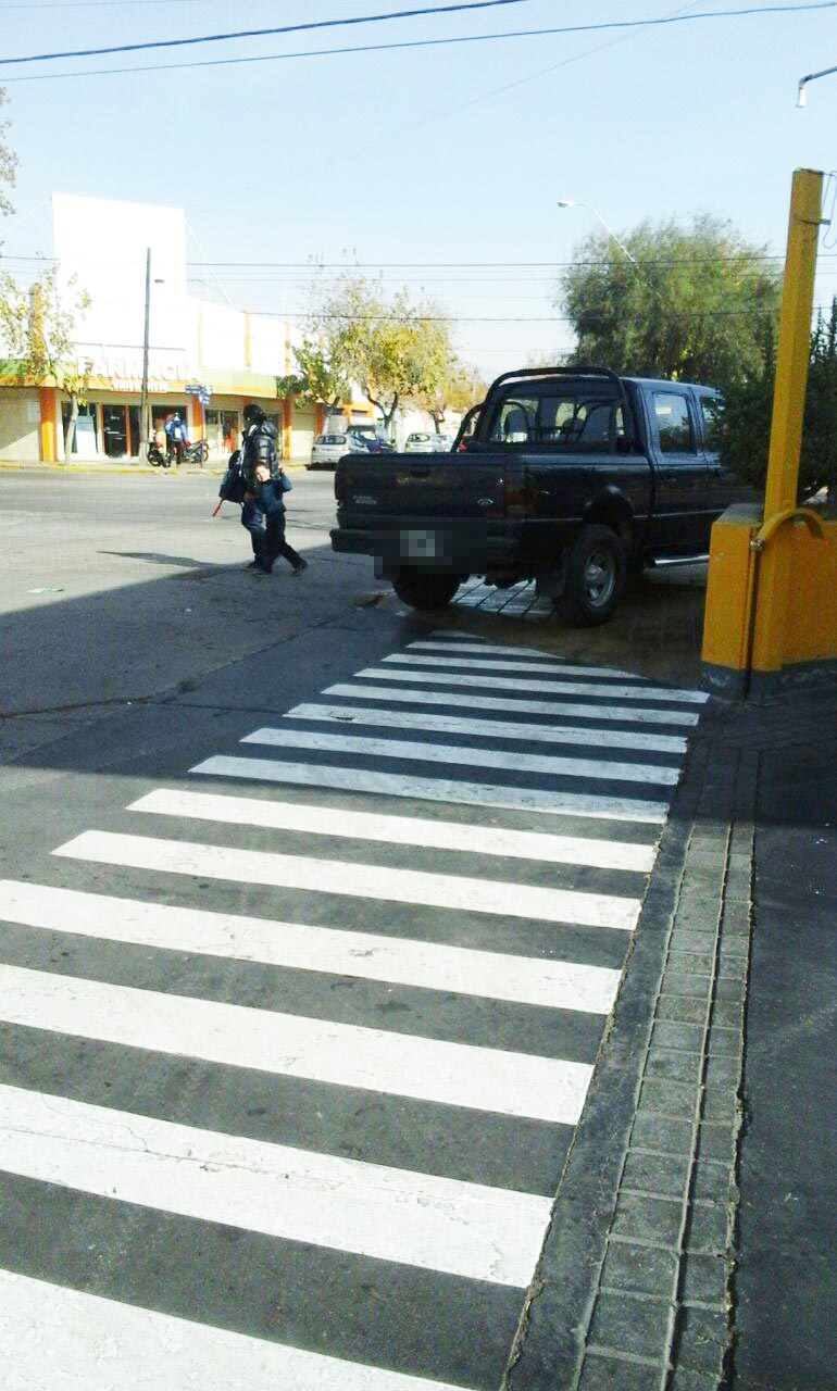 Una camioneta ubicada en la esquina y en la veredad. Esto fue en avenida Rawson y Pedro Echagüe, Capital.