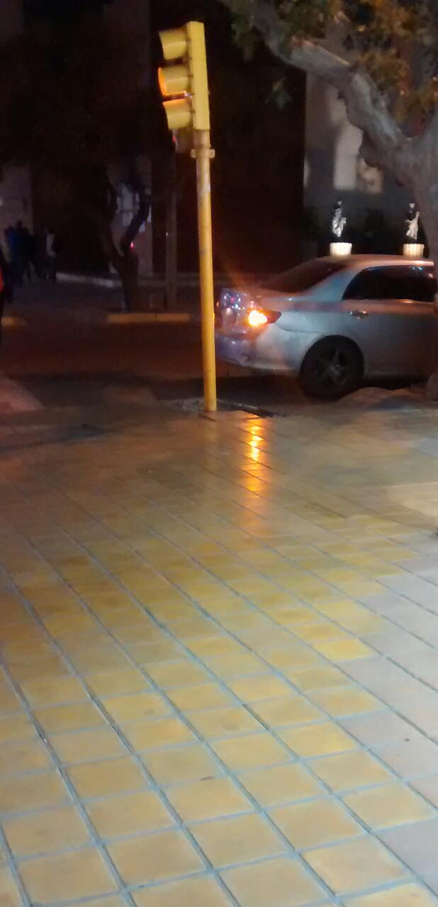 Esto fue el lunes en horario de comercio, en calle Rivadavia y Mendoza. Ahí lleva más de 15 minutos estacionado tapando el puente.