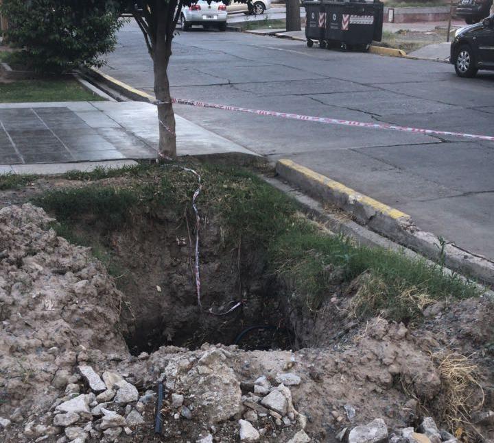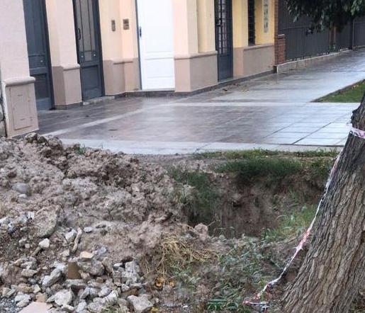 Un vecino de Capital envió imágenes de un profundo pozo en medio de una vereda de calle Rivadavia al 806 Oeste.