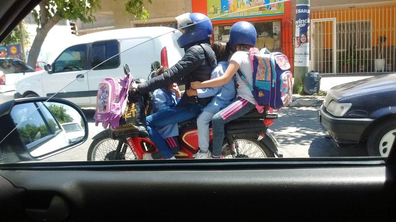 Un lector envió una imagen y el siguiente comentario: “¿Se puede ser tan incosciente? Uno puede entender a este papá que tal vez no tenga otra forma de llevar a los chicos, pero exponerlos a esto???”.
