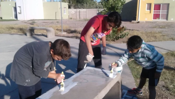 Con la ayuda de sus padres, los menores pintaron los bancos del lugar e hicieron tareas de limpieza. Una mamá manifestó que llevaron adelante la iniciativa porque "el municipio está ausente".