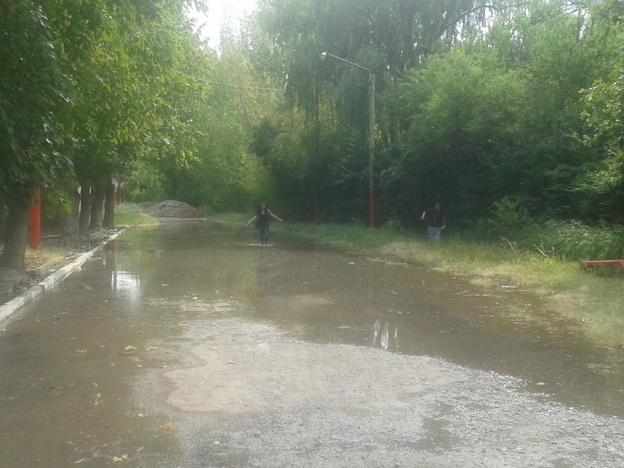 Los vecinos del barrio Santo Domingo, de Chimbas, ponen en riesgo su físico y sus calzados para poder cruzar una calle.