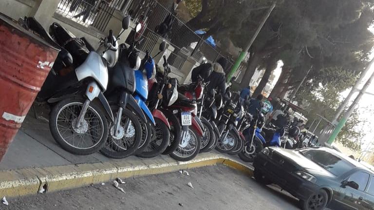 Un lector envió imágenes de la vereda del hospital Marcial Quiroga invadida por motos estacionadas.