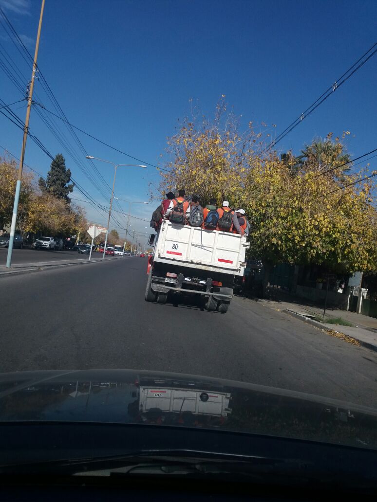 Hola, vi a estos municipales de Rawson y pensé que viajan como vacas, ¿y la seguridad dónde está?