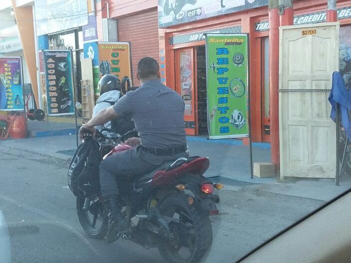 Un lector envió una imagen y el siguiente comentario: "Este hombre pertenece a una fuerza de seguridad, anda sin casco, sin patente, parece que a él nadie lo controla. La imagen fue tomada en Benavídez y Paula Albarracín de Sarmiento".
