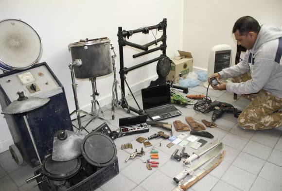 Un cuchillo de gran tamaño, 2 machetes, 4 cartucheras, un revólver calibre 22 largo, 3 armas de puño tumberas (de fabricación casera), una pistola de aire comprimido, 32 cartuchos calibres 7.62, 38 especial, 22 y 14. Documentación de 3 personas, una notebook, una batería de música, 2 taladros y otras herramientas. Con todo eso se toparon ayer los efectivos de Robos y Hurtos, cuando allanaron la casa de un joven que vive en una villa de Chimbas. La principal sospecha de los pesquisas es que el detenido se dedicaría a alquilar esas armas a delincuentes, aunque no descartan que se dedique a cometer asaltos y a reducir objetos robados, informaron fuentes policiales.