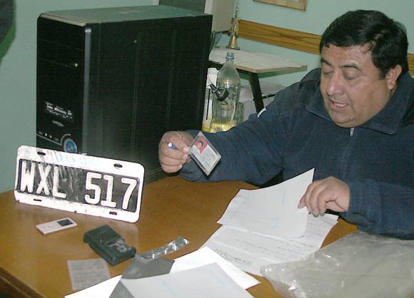 Allí los efectivos hallaron los carnet, el papel para "truchar" las obleas, la computadora, dos decodificadores de Direct TV, unas 100 copias de películas y una chapa patente, que estaba en el techo. Y apresaron a Enrique Hidalgo (30), a quien ya le habían secuestrado en abril último un VW Polo (que dijo comprar de buena fe) robado en Buenos Aires en mayo de 2009. En esa ocasión, el carnet y la tarjeta verde, eran falsas, dijeron en la seccional.