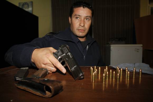 Una pistola 9mm. con los números limados, dos cargadores, 26 proyectiles y un portacargador. Con esa arma -que sería robada a un policía- se toparon ayer al mediodía policías de calle de la comisaría 6ta. cuando buscaban evidencias de un robo en una casa de Villa Sáenz, Rawson. Según la policía, apresaron a un hombre de apellido Videla, por tenencia ilegal de arma de guerra.