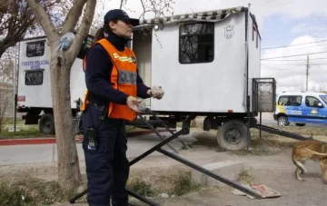 Una joven agente de la Policía provincial que custodia un puesto policial de un barrio en Rawson y que cumplía con la nueva directiva del Ministerio de Gobierno de hacer vigilancia fuera de esa casilla, vivió ayer en la madrugada un momento límite cuando cuatro ‘motochorros’ la atacaron. La versión policial indica que los malvivientes se detuvieron a preguntar una dirección y cuando la uniformada se dio cuenta que algo raro pasaba, la encañonaron. La agente corrió por las escaleras para tratar de refugiarse en el interior del puesto policial, pero allí uno de los delincuentes la tomó del pelo y la hizo caer. A pesar del ataque, la policía logró encerrarse y allí los sospechosos apedrearon y rompieron el cristal de una ventana de la casilla móvil.