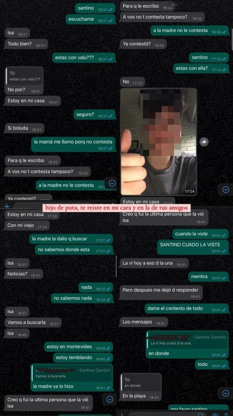 En las últimas horas se hizo viral un chat entre el ahora detenido y una amiga de Valentina. La conversación se produjo el martes, y en ella el menor dice desconocer la suerte de Valentina e incluso sugiere ir en su busca.