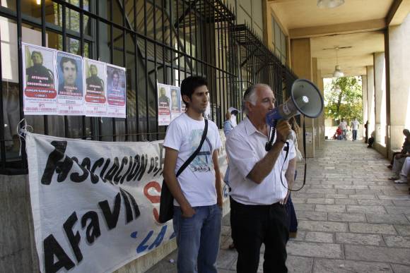 La concentración no fue numerosa -no más de 20 personas-, pero no faltaron los carteles y una sirena que llamaron la atención en la entrada a la sede de Justicia. Daniel Ruíz, acompañado por miembros de la Asociación de Familiares y Víctimas de la Inseguridad e Impunidad (A.Fa.V.I.I.), volvió a remarcar que la investigación policial por ahora no arrojó pistas concretas para averiguar el paradero de su padre, desaparecido el 24 de septiembre pasado, y por eso pidió a la gente que aporte cualquier dato que sepa.