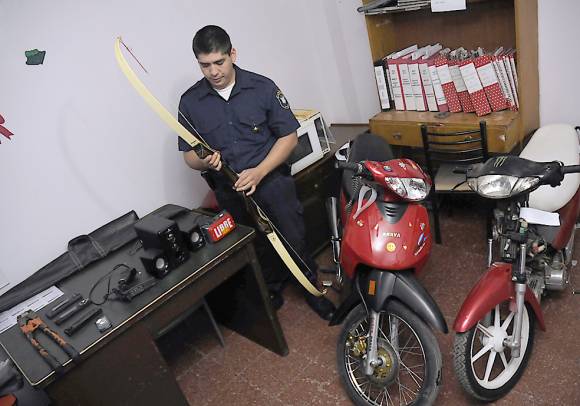 Según la policía, los sospechosos son investigados además por un "escruche" el jueves pasado en una casa de Villa Tacú, Zonda, en la que cortaron las rejas de una ventana y una claraboya para robar aparatos y otras cosas, entre ellas, el arco secuestrado ayer, dijeron en la policía.
