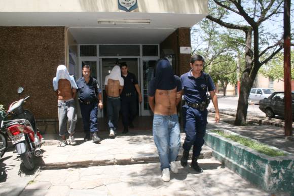 Tres jóvenes y una chica de 17 años fueron detenidos ayer a las 10 por una patrulla del Comando Radioeléctrico cuando estaban robando en una casa de Patricias Sanjuaninas y Valdivia, en Trinidad. El oficial Juan Soria y el agente Gustavo Flores apresaron a Víctor Tejada (19), Jonathan Gómez (21), Alberto Bergara (23) y una jovencita, indicó la policía.
