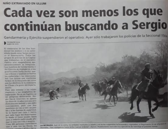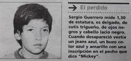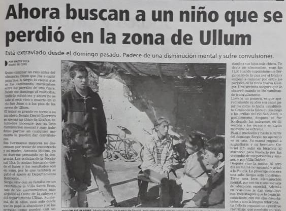 Uno de los casos policiales que mayor impacto generó en los sanjuaninos, comenzó el domingo 11 de agosto de 2002 y aún no tiene un final. Se celebraba el Día del Niño y Sergio David Guerrero, de 13 años, salió de su precaria vivienda ubicada en el interior de Villa Santa Rosa, en Ullum y jamás regresó.