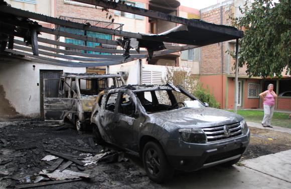 El hecho tuvo un instante dramático, porque dentro de la casa estaba el dueño de esos vehículos, Federico Alvarez (25) y su novia Belén, quienes pudieron escapar ilesos.