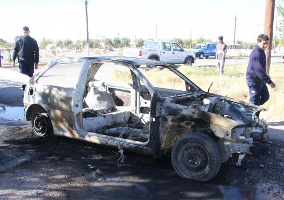 Según la Policía, el Gol fue encontrado ayer a las 4.30, sin el motor ni los asientos, ardiendo en un baldío de calle Esmeralda y Obrero Argentino, en el Bº Virgen de Fátima, Chimbas.