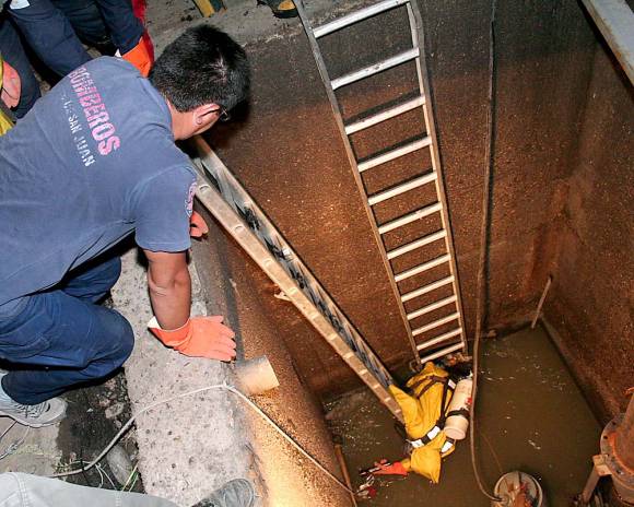 La primera estimación estadística se rompió alrededor de las 4 de ayer. Se suponía que a esa hora la gente no usaría el servicio y el caudal bajaría en la planta de tratamiento de líquidos cloacales en el Bajo Segura, Santa Lucía. Y que entonces los bomberos podrían meterse en dos tramos de caños de 160 centímetros de diámetro dentro de la planta (unos 170 metros en total) donde se cree que puede estar atorado el cuerpo de Rodrigo Muñoz (26), el joven cayó a la cañería hace una semana cuando trabajaba en una conexión al sistema, a 5 km. de la planta. Pero a las 5,23 de ayer el caudal apenas bajó y los bomberos dirigidos por el comisario Rogelio Alcayaga sólo pudieron asomar sus linternas, sin novedad sobre el cuerpo. Entonces desde OSSE se ensayaron otras soluciones, como taponar cerca de la planta uno de los afluentes y drenarlo a otro lugar. Ahí, el líquido bajó un poco más y anoche, cerca las 22, otro bombero pudo bajar por una cámara, alumbrar y hasta caminar en un corto tramo del caño con los líquidos hasta la cintura, pero los sedimentos del piso, "chuparon" sus botas y lo hicieron caer. A partir de ese instante se resolvió postergar la búsqueda, otra vez hasta las 5 de hoy.