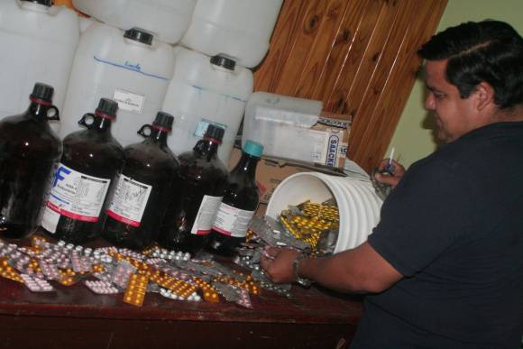 Resuelto, el sujeto ingresó por el largo pasillo hasta el fondo y preguntó por el nombre de una mujer al primero que vio; el empleado de una avícola contigua a la vivienda de la mujer que buscaba. Cuando le confirmaron el dato, el desconocido entró con otros dos que lo acompañaban en un camión y empezó a bajar recipientes: Cinco frascos oscuros, cinco bidones y cuatro tachos plásticos de 20 litros (todos vacíos) fueron ubicados en el costado trasero de la vivienda, lejos de ojos curiosos de la calle. Hubo también un paso aún más extraño: el mismo sujeto no dudó en guardar dentro de la vivienda un último tacho plástico, repleto de medicamentos, unos 400 blister de pastillas varias con vencimiento en el 2011, estimaron en la Policía. Es más, el sujeto encargó a uno de los 4 hijos de la dueña de casa, de 7 años, que lo pusiera en alto, lejos del alcance de él y sus hermanitos.