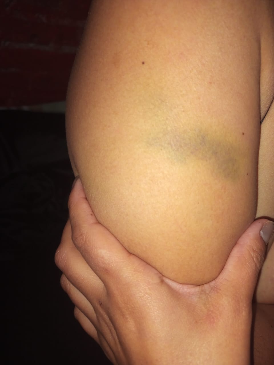 Nahuel Fernández declaró el último viernes ante el juez de Garantías Juan Gabriel Meglioli que esa noche estaba con dos amigas (una de ellas con un bebé) que habían ido a cenar junto a otro hombre, que se había retirado. La denunciante dijo que nunca vio a esas personas porque cuando llegó en moto a la casa de la escuela (termina el secundario en una nocturna), como lo hacía normalmente, su pareja "sale y me dice ‘negra, ¿por qué mejor no te vas?’". Allí, en la vereda, empezaron a discutir, "forcejeamos, me agarra de los pelos, me lleva contra el portón y mi cabeza rebota. Trato de soltarme pero no puedo, me tropiezo y caigo de espaldas". Estando en el suelo, "se arrodilla y me empieza a pegar. Me golpeó la nariz, la boca, el cuello, me daba piñas en la cara y me hizo un corte, no sé si con las uñas o las llaves de mi moto".