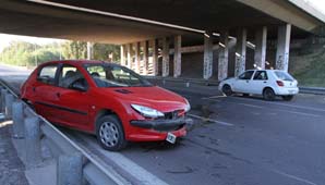 San Juan,13 de junio.- No pasó a mayores un accidente porque ambos vehículos circulaban a una velocidad prudente esta mañana por Rawson y Circunvalación Norte, justo debajo del puente.
