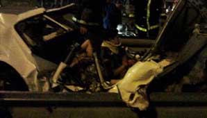 Tal fue la magnitud del choque, que en el camino, el auto destrozó un señalizador y también las puntas de dos guardarraíl. Personal de Bomberos, Policía de San Juan y también enfermeros de ambulancias, tuvieron que trabajar intensamente para retirar al conductor y también para sacar el cadáver de la víctima. El vehículo quedó literalmente partido en dos y sin techo, producto del fuerte impacto y también de los trabajos de rescate.