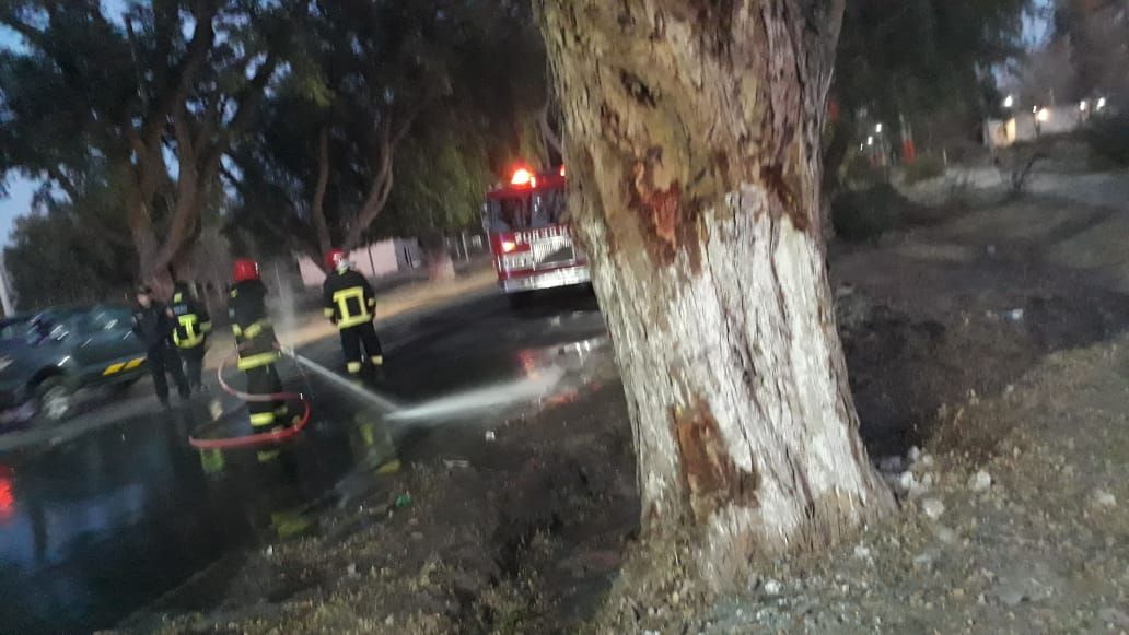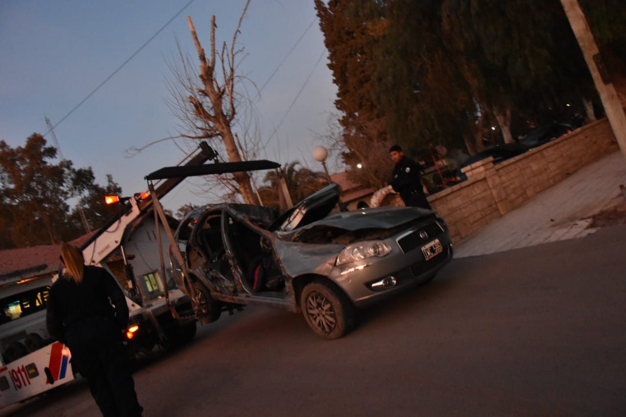 El accidente sobre Avenida Benavídez, frente al Penal de Chimbas, fue tan violento que el auto quedó destruido y personal de bomberos debió rescatar de entre los hierros el cuerpo de las tres víctimas fatales.