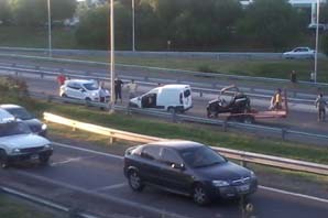 Según informó la policía, un utilitario que remolcaba en un trailer a un cuatriciclo volcó. El hecho no pasó a mayores, pero sí generó una larga cola de vehículos.