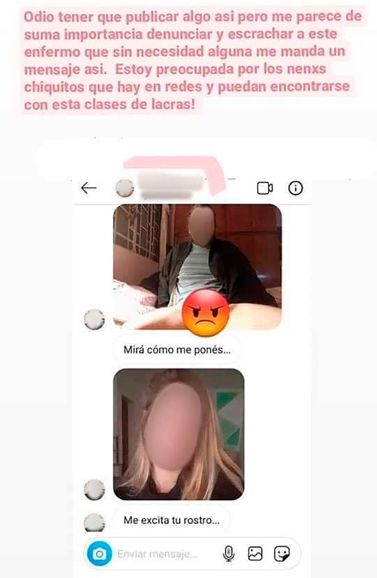 Varias mujeres lo señalaron en posteos de Facebook en los últimos días como el responsable de haberlas acosado a través de mensajes privados en los que además les enviaba fotos explícitas de sus genitales sin su consentimiento. “Odio tener que publicar algo así pero me parece de suma importancia denunciar y escrachar a este enfermo que sin necesidad alguna me manda un mensaje así. Estoy preocupada por los nenes chiquitos que hay en redes y que puedan encontrarse con esta clase de lacras”, escribió una de sus denunciantes junto a una captura donde se puede ver una foto del hombre con sus piernas abiertas junto a un mensaje: “Mirá cómo me ponés”.