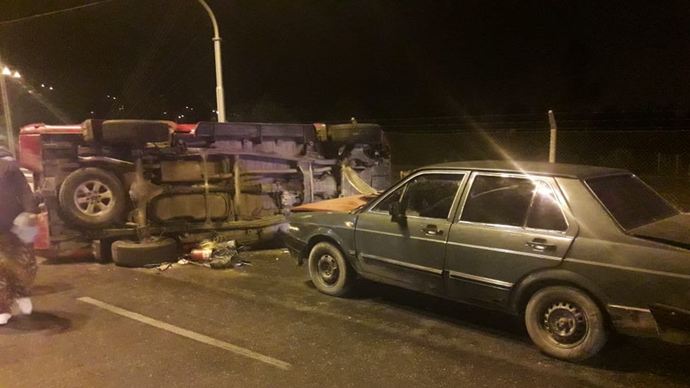 A decir de la policía, aparentemente la calzada mojada le jugó una mala pasada al conductor de una camioneta Mitsubishi que cuando llegó a Galíndez perdió el control del vehículo, derrapó, volcó y al cruzarse de carril impactó con un auto VW Gacel que terminó con daños menores.