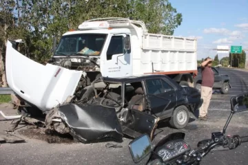 Eran alrededor de las 17 de ayer cuando Carlos López esperaba detrás de un Peugeot 504 para intentar cruzar la ruta 20, de Sur a Norte, al Este del puente de Circunvalación, en Santa Lucía. En eso estaba -dijo- cuando vio que el automovilista quiso pasar, se quedó a medio camino y fue embestido por una camioneta Chevrolet S10 cuyo conductor bajaba del puente hacia el Este y, tras el impacto, chocó el guardarrail de su izquierda. Pero lo más impresionante vendría enseguida: el Peugeot fue otra vez impactado por un camión Dimex D1416, que circulaba en sentido contrario al de la camioneta, al Oeste, y literalmente lo destrozó a pesar de una prolongada frenada en el asfalto para evitarlo, informaron en la policía.