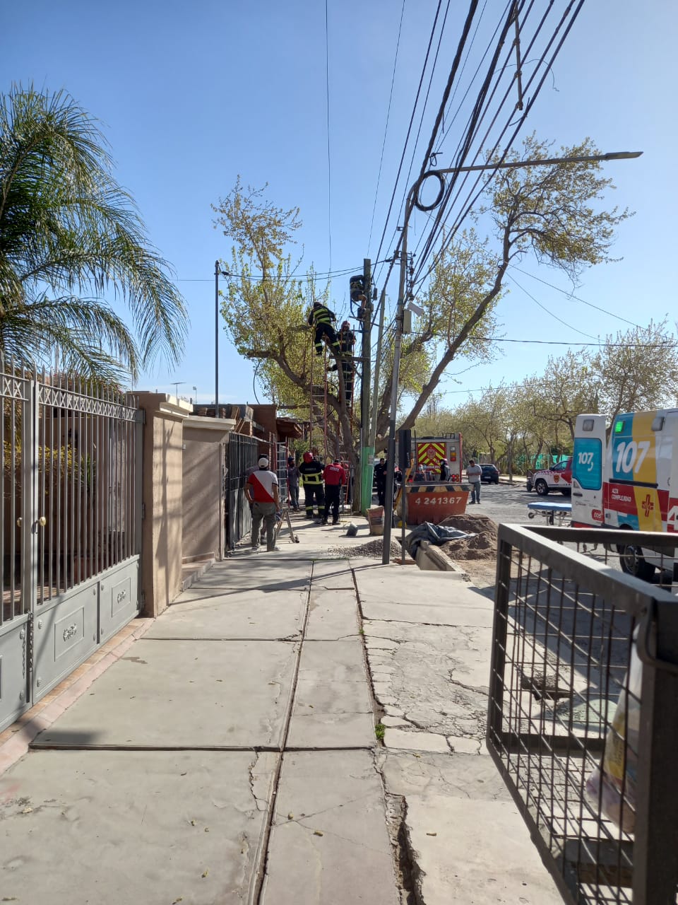 El rescate del operario que este miércoles recibió una descarga eléctrica en Rivadavia fue dramático. Es más, los vecinos creían que estaba muerto, pero de un momento a otro reaccionó y todo fue desesperación y angustia por ese trabajador que hasta llegó a prenderse fuego, aunque resistió y fue trasladado con vida al hospital.