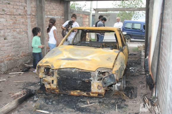 Silvina había vuelto a su casa como a las once y media de la noche del miércoles luego de preguntarle a su hermana si, como siempre, harían el viaje desde Albardón a la feria capitalina a comprar mercadería y carne. Apenas llegó la rutina en su casa siguió su curso normal hasta que se acostó, como a las 2 de ayer. Pero apenas se durmió escuchó a su vecina llamarla a viva voz desde la calle. Cuando salió, un poco asustada, no tardó en descifrar la desesperación de la mujer: un esplendor de las llamas copaban por completo el Ford Escort naftero modelo 92 que había comprado hace un año con el fruto de su trabajo como pequeña comerciante. Y enseguida atinó a hacer algo pero la apartaron bruscamente por el peligro de que explotara el tanque de combustible. Desde lejos, algunos se animaron a tirar algo de agua pero fueron los bomberos los que controlaron el siniestro cuando ya había consumido el auto, el techo de cañas en el que pensaba poner machimbre y la parte externa de su equipo de aire acondicionado.