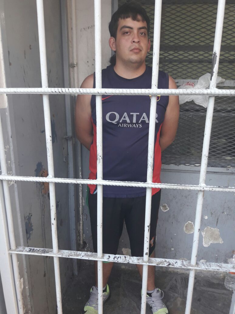 Tras algunos forcejeos para hacer efectiva la detención, en un patrullero meten a uno de los jóvenes y en otro a los dos restantes. Pero el traslado hasta sede policial fue complicado: los dos sujetos, identificados como Ariel y Ezequiel Tobal, empiezan a golpear una de las puertas traseras dañando el panel interno y rompiendo el vidrio.