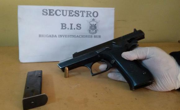 Los policías de la Brigada Sur detuvieron el sábado a un hombre que merodeaba la zona de Ruta 40 y calle Progreso, Rawson, y llevaba una pistola 9mm con un proyectil. El hombre, de apellido Cofre (41) y con antecedentes, fue apresado por personal a cargo del subcomisario Jorge González y el inspector Marcelo Llanos.