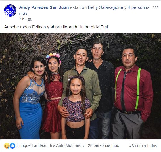 Las redes sociales se llenaron de mensajes de dolor y de acompañamiento a la familia. En este sentido, fue su padre quien decidió publicar en su cuenta de Facebook un emotivo y desgarrador mensaje que se llenó de comentarios en busca de calmar tanto dolor: "Anoche todos felices y ahora llorando tu partida Emi", posteó.