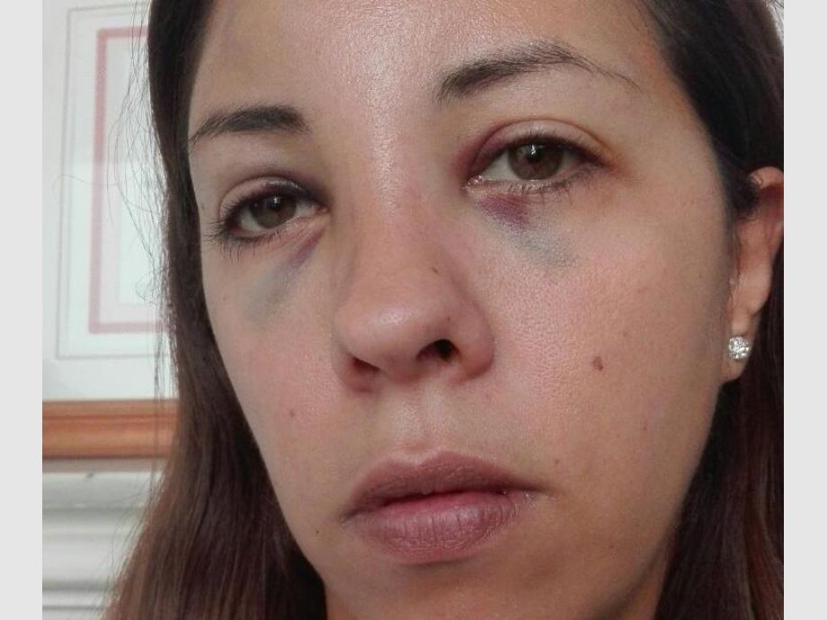 Así le quedó el rostro a Eugenia luego del cabezazo de su pareja