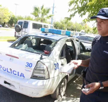 Unos vándalos del asentamiento General Mosconi, Rawson, rompieron la luneta y el radiador del móvil policial de la Unidad Pocito Norte. Esto ocurrió ayer en la mañana, cuando dos agentes fueron a un domicilio de esa villa tras un llamado que señalaba que un hombre golpeaba a su mujer y a sus hijos. En el momento en que trataron de trasladar al agresor, algunas personas del lugar forcejearon con los policías y lanzaron piedras contra la patrulla.
