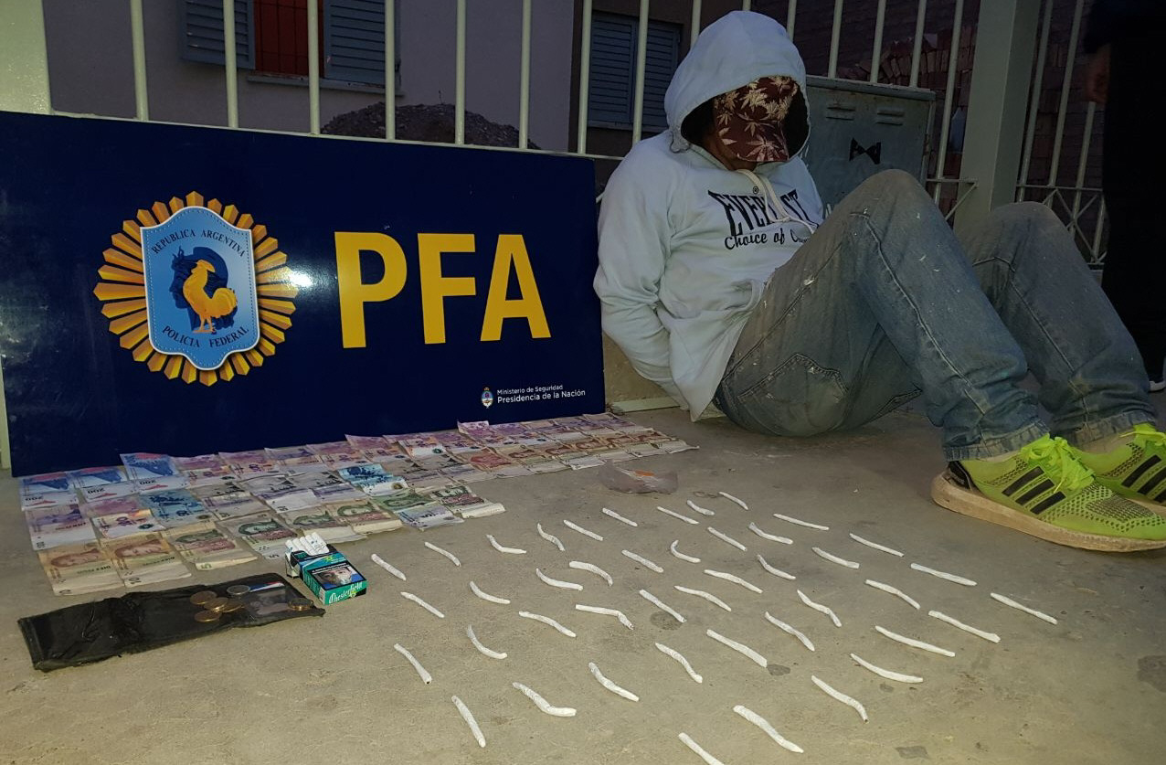 Efectivos de la delegación local de la Policía Federal apresaron en la tarde de ayer a un sujeto de apellido Reinoso, de 35 años, en la Plaza del barrio Echeverría, en Concepción, Capital. El sospechoso tenía en su poder 46 porros y alrededor de 1.500 pesos que, al parecer, había conseguido con la venta de ese estupefaciente, indicaron fuentes policiales. El juez Leopoldo Rago Gallo decide qué suerte correrá el imputado.