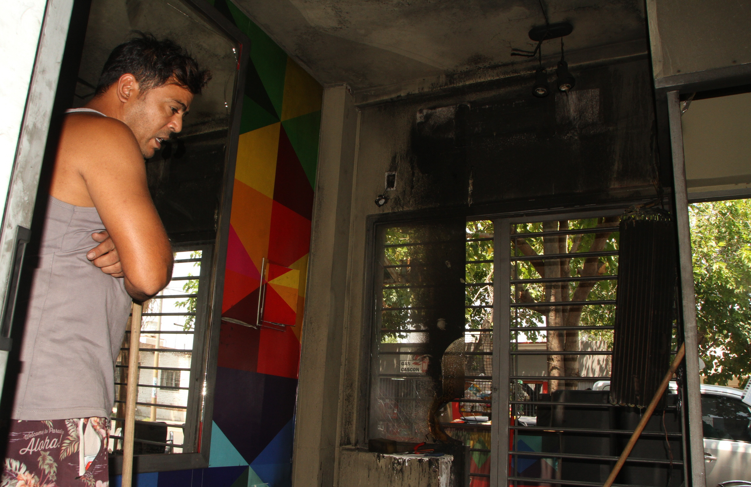 Facundo Dávila, el dueño, contó que los vecinos lo llamaron a eso de las 3 de la mañana para avisarle que había fuego en su peluquería situada en Av Rioja, metros al Norte de calle Paraguay. “Es un bajón. El fuego empezó dentro del equipo de aire acondicionado y el problema fue por la baja y suba de tensión de la energía. Los vecinos dicen que tuvieron el mismo problema”, relató el peluquero. El fuego destruyó el aparato y se propagó por parte del local destruyendo el vidrio del frente, los espejos, un sillón, el piso de madera y toda la instalación eléctrica, además de los daños en la estructura del local.