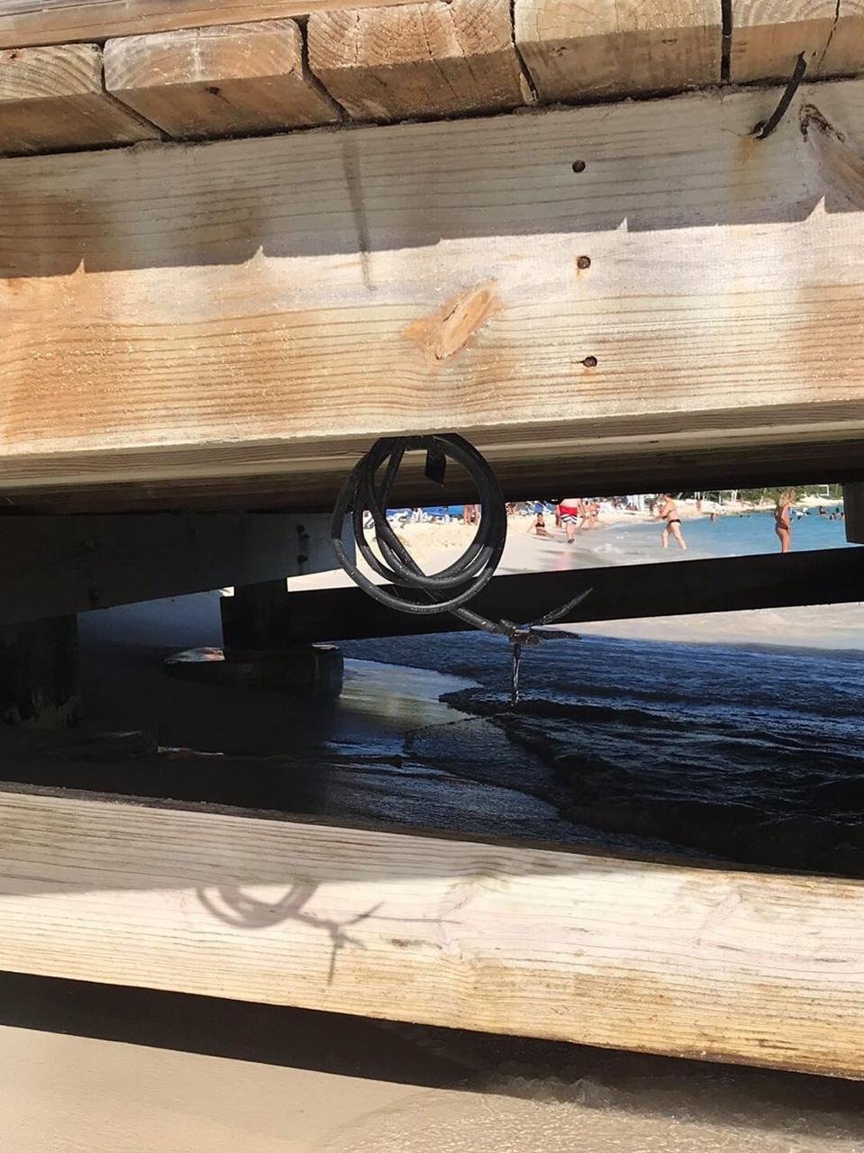 "El cable está solo aislado con una cinta aisladora que no soporta agua y menos agua salada. El cable conducía corriente alterna de 110 V y aparentemente no tenía disyuntor diferencial. Debería haber sido una instalación de baja tensión en 12 V, con transformador de doble aislación y disyuntor (se usan en la iluminación de las piletas de natación que tienen agua dulce de baja conductividad eléctrica) en lugar de usar corriente alterna 110 V", aclararon los especialistas en el informe, al mismo tiempo que destacaron que la escalera usada para tirarse al agua era de un material conductor, y no de plástico.