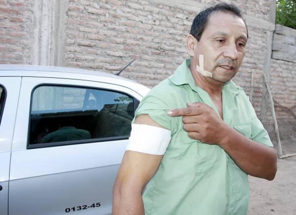 ‘Les pedí que se llevaran la plata y el celular. Pero el que me agarraba, estaba sacado. Estaba como loco y gritaba: dame la radio y el tarifador. El otro ladrón le decía: ya está. Ya está’, explicó. En esos momentos, el remisero no llevaba el equipo de comunicación ni el tarifador, por lo que los ladrones le robaron nada más que los 100 pesos de la recaudación y su celular. Después escaparon y desaparecieron tras trepar una pared del estadio. Un vecino de la zona corrió a ayudar a Francisco López Vega, incluso llamó a la Policía y le dio alcohol y una toalla para que se limpiara la sangre. La gente le dijo que en el último tiempo ya asaltaron a 5 remiseros en ese lugar. ‘Sentía el ardor en la cara, pero no me había dado cuenta de la herida en el brazo’, relató el chofer, que fue atendido en el Hospital Rawson. Lo del rostro sólo fue una herida superficial y en el brazo derecho le hicieron dos puntos.