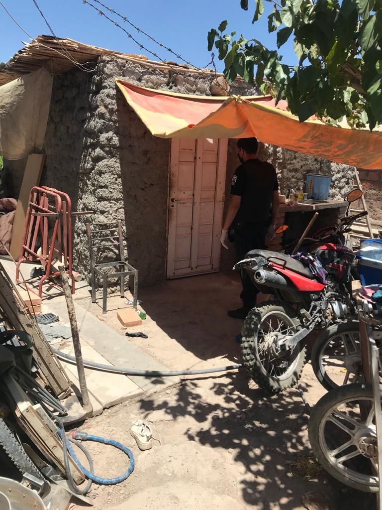 Tras alertar a la policía, personal de las Unidades Operativas Chimbas Este y Mariano Moreno, se hizo presente rápidamente en el lugar. Divisaron a los sujetos descriptos como los asaltantes, quienes al advertir la presencia de los pesquisas intentaron ingresar a un domicilio del barrio, arrojando un elemento que pudo ser secuestrado y que resultó ser el teléfono celular del chófer del vehículo de la empresa de medicina privada.
