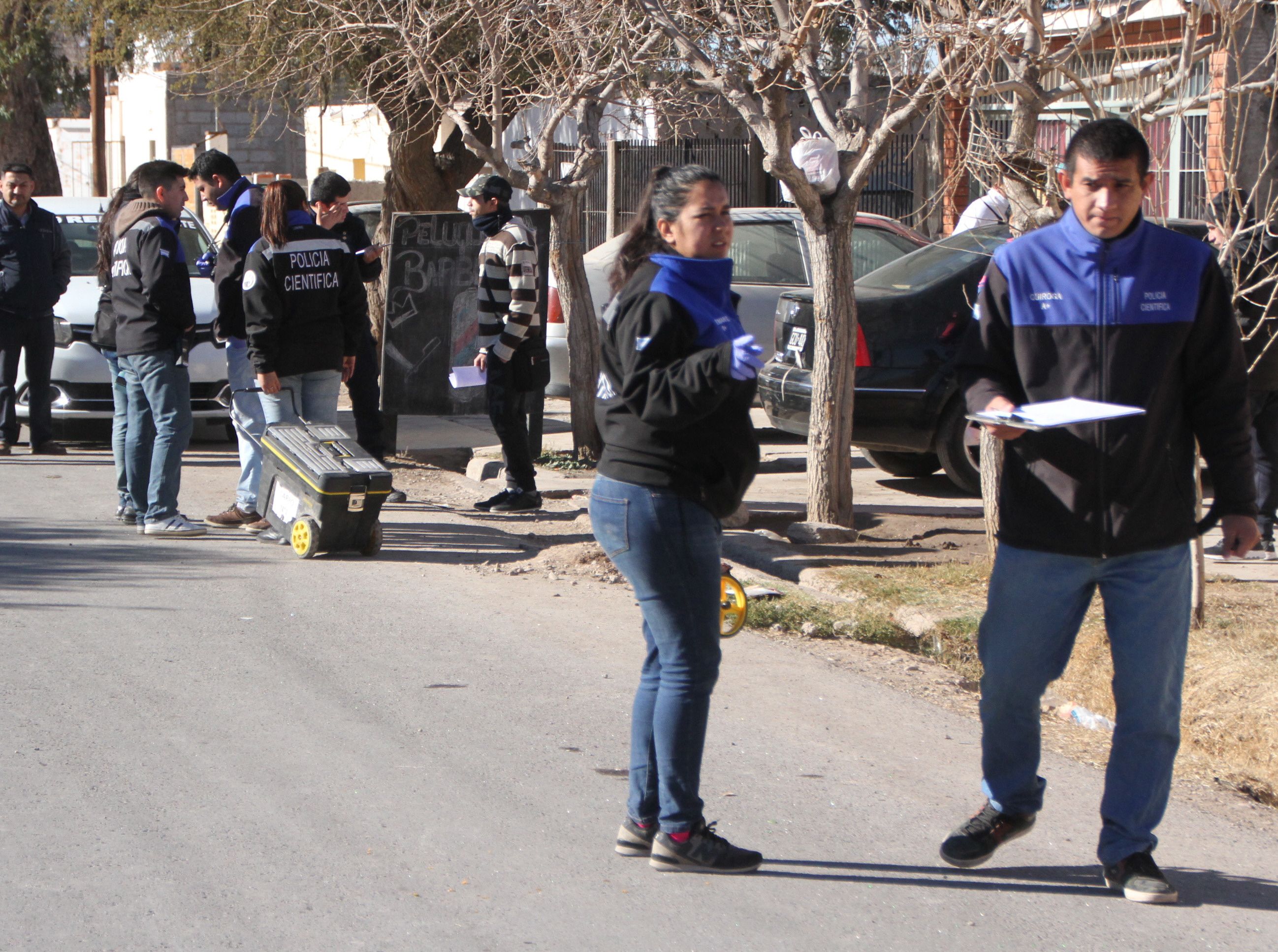 Los pesquisas trabajaban ayer en el lugar donde apuñalaron a los albañiles