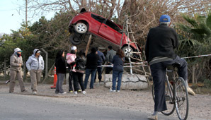 San Juan, 1 de julio.- La espectacularidad del accidente hizo que la noticia recorriera los medios nacionales. En una recta, el conductor perdió el control de su auto, colisionó un puente y voló hasta caer en una mora. El hecho sucedió ayer en calle 11, entre Vidart y Costa Canal, Pocito. En las últimas horas se dio a conocer el video de cómo policías y bomberos se las ingeniaron para bajar el vehículo.