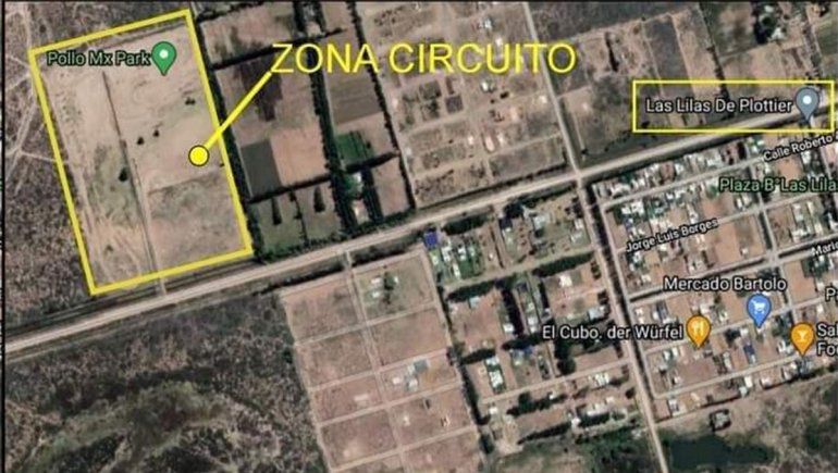 El predio de la pista de “Motocross Mx Pollo Mark” está ubicado a unos 300 metros del ingreso al barrio Las Lilas, contiguo a la Autovía Norte, según informa LM Neuquén.