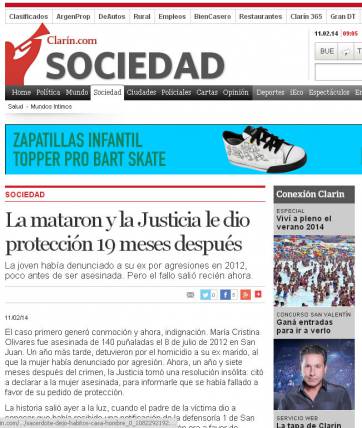 San Juan, 11 de febrero.- Gran indignación causó en todo el país la citación a Cristina Olivares, muerta de 160 puñaladas el 7 de julio de 2012. El grosero error de la secretaria de la Defensoría Nº1, Natacha García, repercutió en varios medios nacionales.