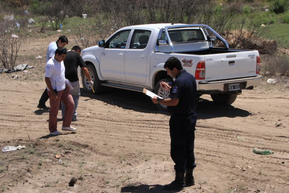 El conocido empresario José Victoria fue asaltado el jueves a la noche por un desconocido que le pegó un ladrillazo y le robó su Toyota Hilux en su bodega en Caucete. Ayer, el vehículo apareció abandonado (foto) en un baldío de calle Colón, en el mismo departamento.