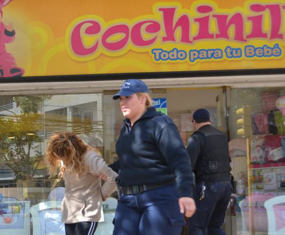Dos supuestas ‘mecheras’, una de las cuales llevaba una beba, fueron detenidas por policías del Cuerpo Especial de Vigilancia ayer a las 11 cuando entraron a una tienda de Tucumán y Santa Fe, en plena Capital, a pocos metros de otro negocio de donde el sábado último sustrajeron un nebulizador. Personal de este último local las reconoció porque aquel entonces fueron captadas por las cámaras de seguridad. Las sospechosas son Noelia Arrieta (30) y Karen Flores (18), quien iba con la niña, dijo la Policía.