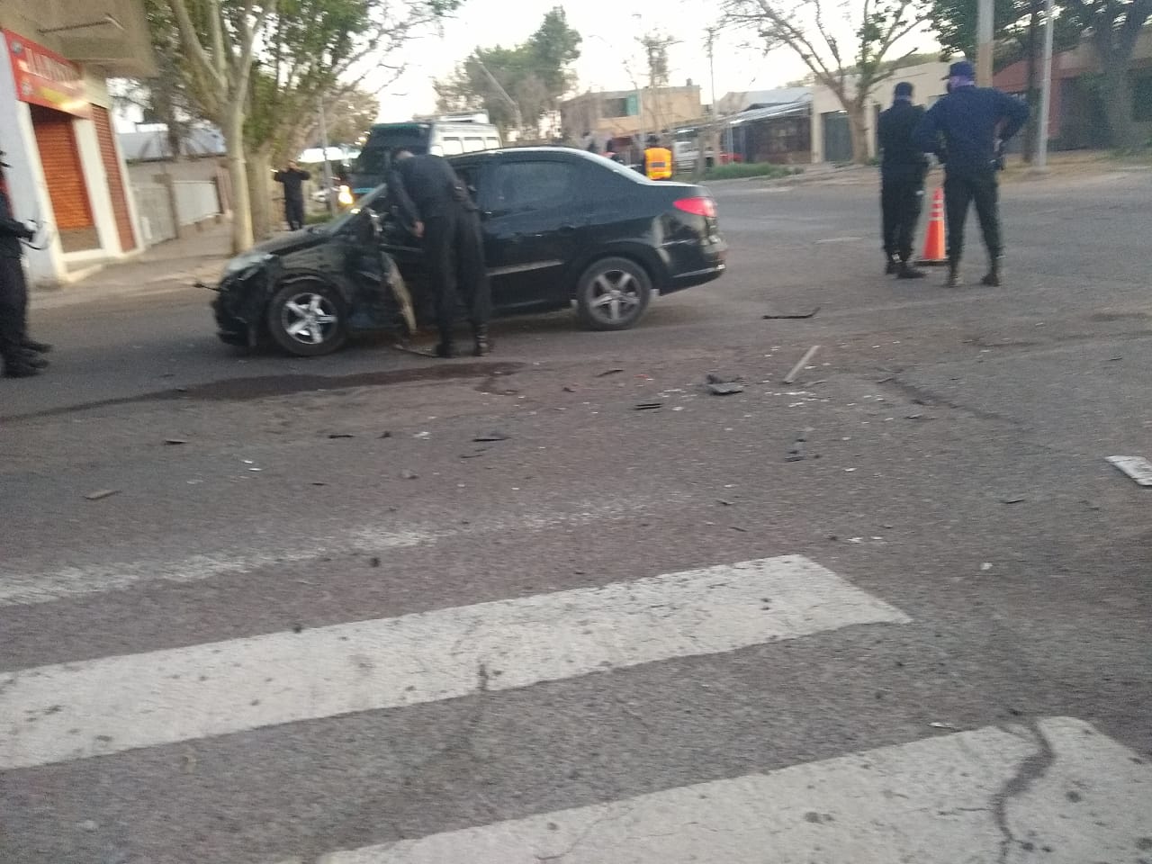 El violento siniestro ocurrió en Mendoza y Circunvalación, en Trinidad, cuando el Peugeot 307 en el que viajaba el efectivo Luis Alberto Gómez, de 39 años, fue embestido por un camión Mercedes Benz que se dio a la fuga.