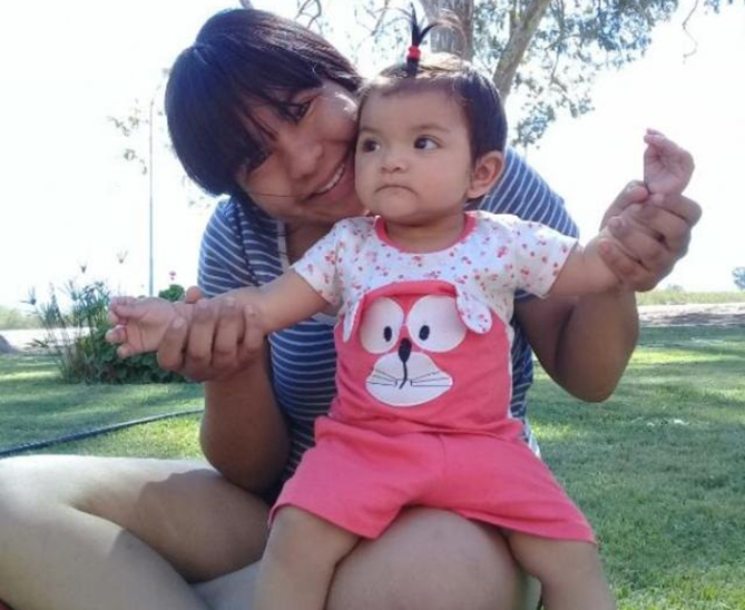 Víctimas. Julieta Luján (15) junto a su sobrina Mía Rojas, de 10 meses. Ambas fueron atropelladas por un automovilista que luego se dio a la fuga.